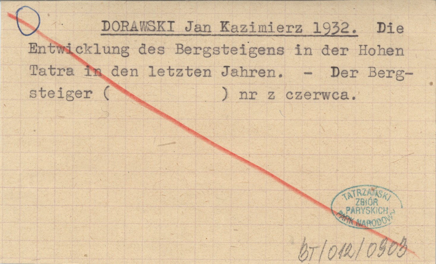 DORAWSKI Jan Kazimierz 1932 Die Entwicklung des Bergsteigens in der Hohen Tatra in den letzten Jahren.