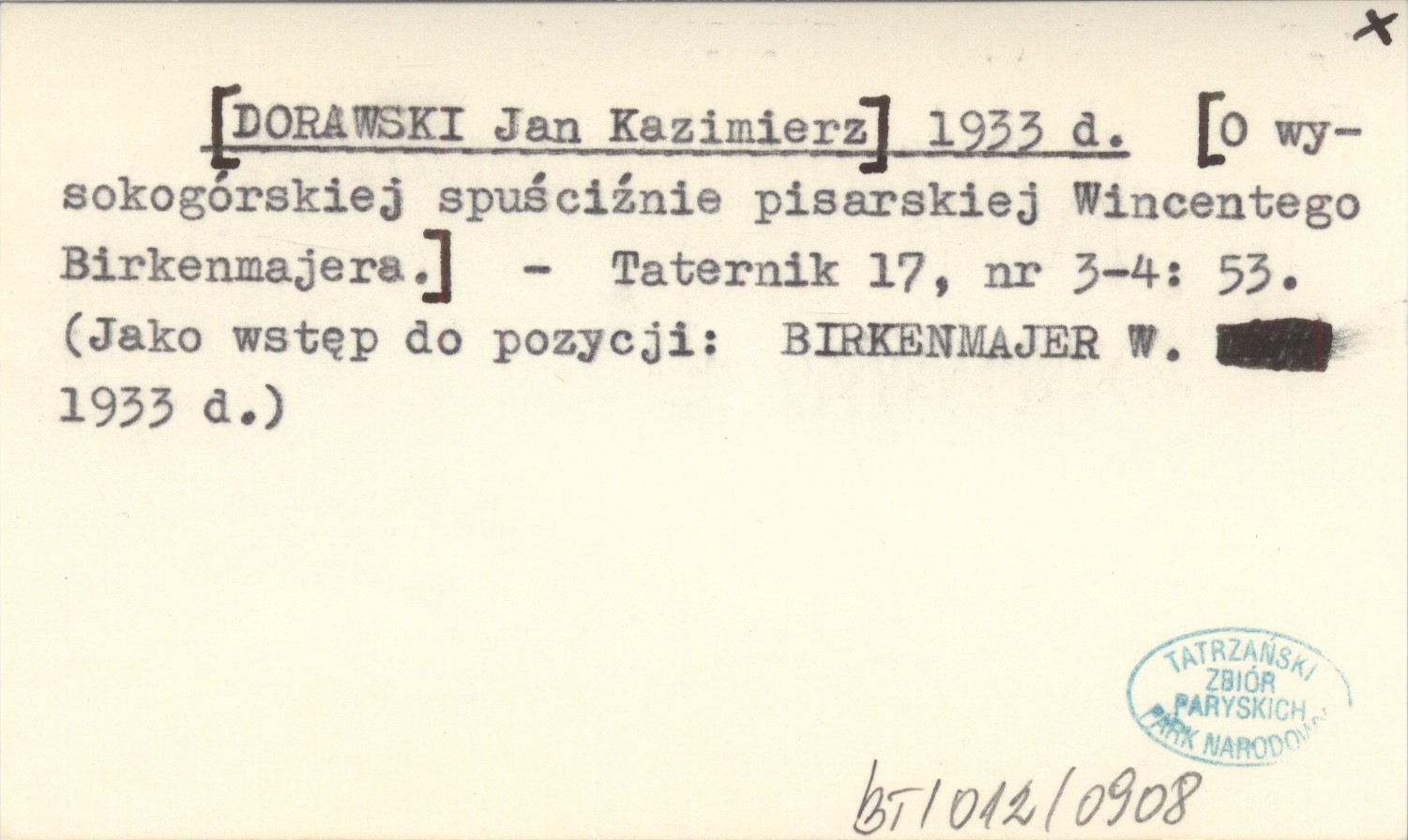 Taternik, 17, nr 3-4: 53. (Jako wstęp do pozycji: BIRKENMAJER W. 1933 d).