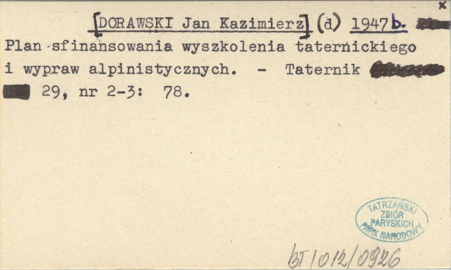 (d) [DORAWSKI Jan Kazimierz] 1947 b Plan sfinansowania wyszkolenia taternickiego i wypraw alpinistycznych.