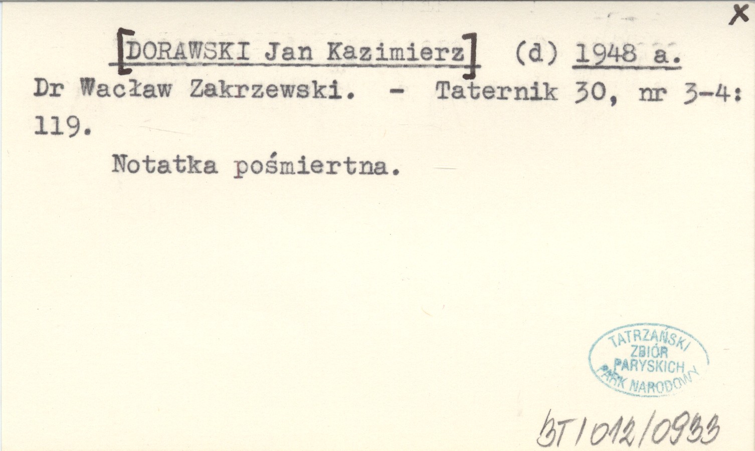 Taternik, 30, nr 3-4: 119. Notatka pośmiertna.