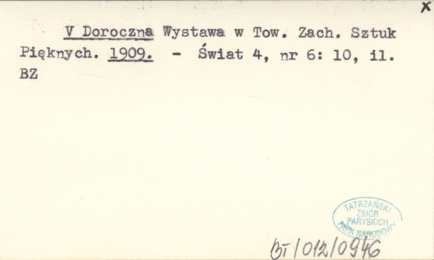V Doroczna Wystawa w Tow. Zach. Sztuk Pięknych. 1909