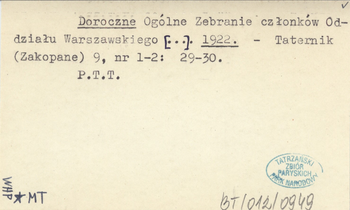 Taternik (Zakopane) , 9, nr 1-2: 29-30. P.T.T.