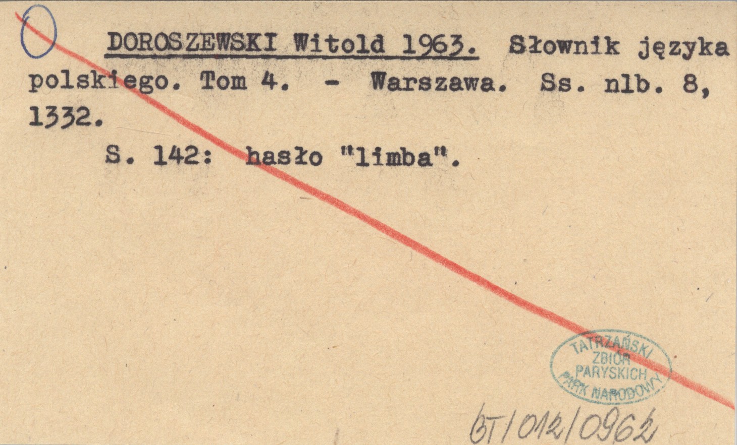 Warszawa , [8], 1332 s. S. 142: hasło "limba".