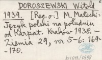 DOROSZEWSKI Witold 1939 [Rec. o:] M. Małecki: Język polski na południu od Karpat. Kraków 1938.