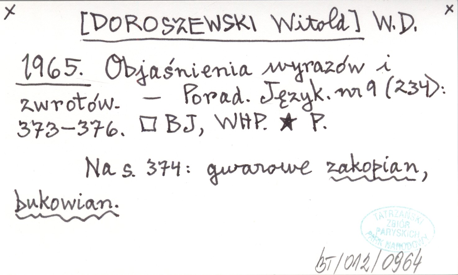 W. D. [DOROSZEWSKI Witold] 1965 Objaśnienia wyrazów i zwrotów.