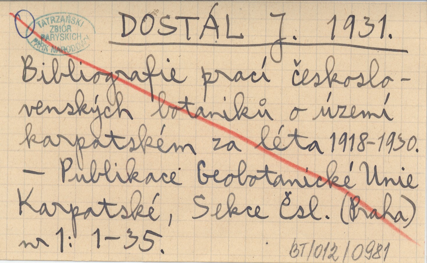 DOSTÁL J. 1931 Bibliografie prací československých botaniků o území karpatském za léta 1918-1930.