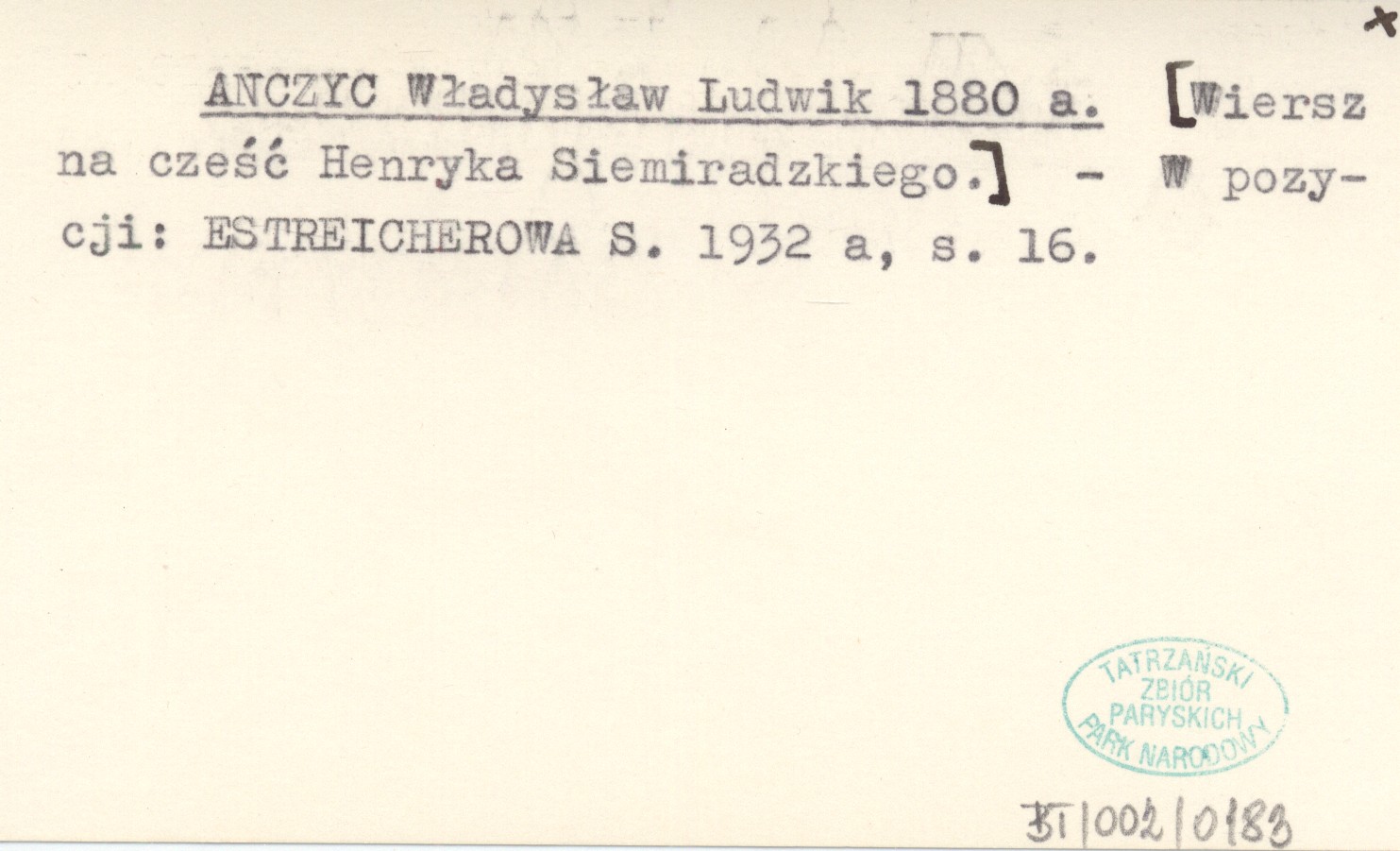 ANCZYC Władysław Ludwik 1880 a [Wiersz na cześć Henryka Siemiradzkiego.]