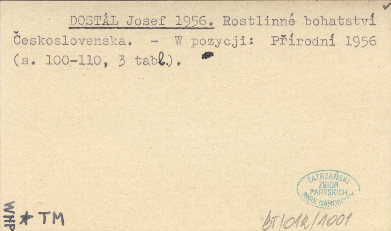 DOSTÁL Josef 1956 Rostlinné bohatství Československa.
