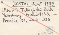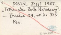 DOSTÁL Josef 1957 [Rec. o:] Tatrzański Park Narodowy. Kraków 1955.