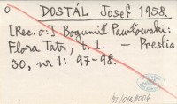 DOSTÁL Josef 1958 [Rec. o:] Bogumił Pawłowski: Flora Tatr. T. 1.