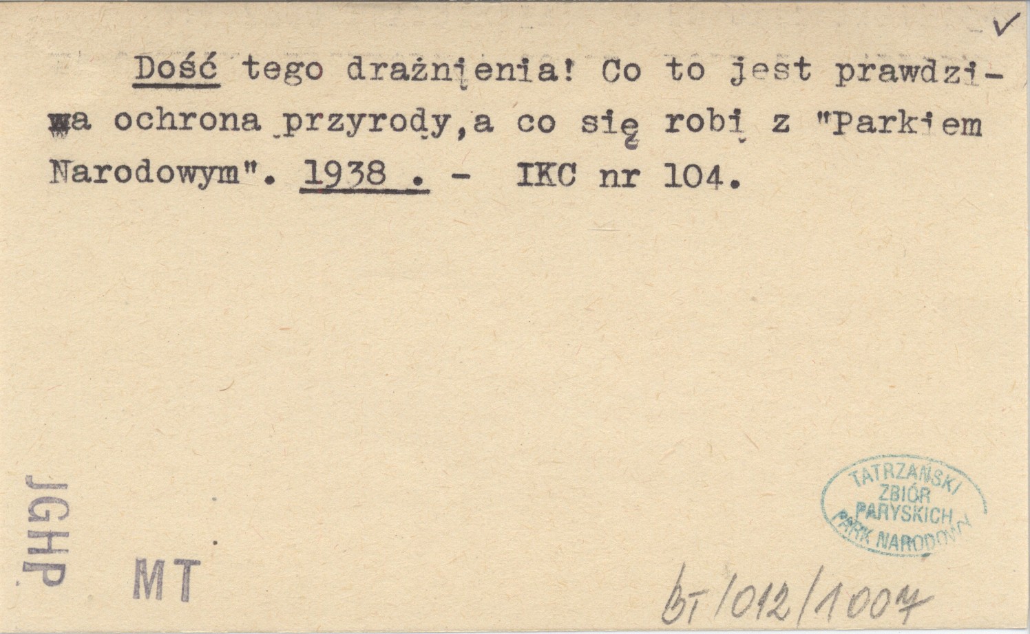 Dość tego drażnienia! Co to jest prawdziwa ochrona przyrody, a co się robi z "Parkiem Narodowym". 1938