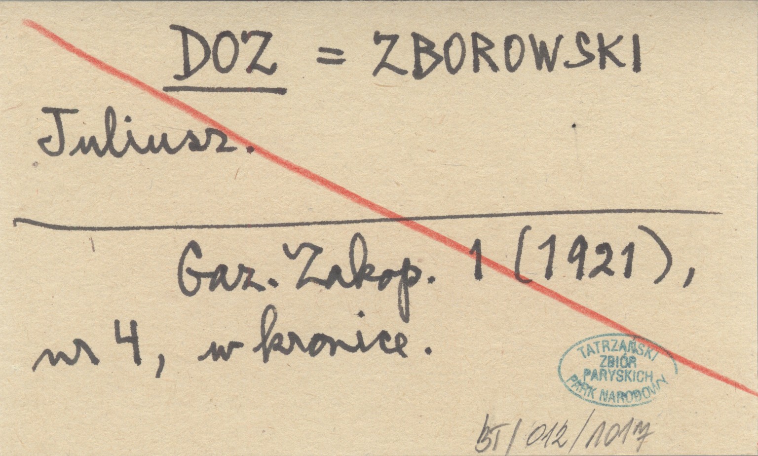 DOZ ZBOROWSKI Juliusz Gazeta Zakopiańska 1 (1921), nr 4. W kronice.