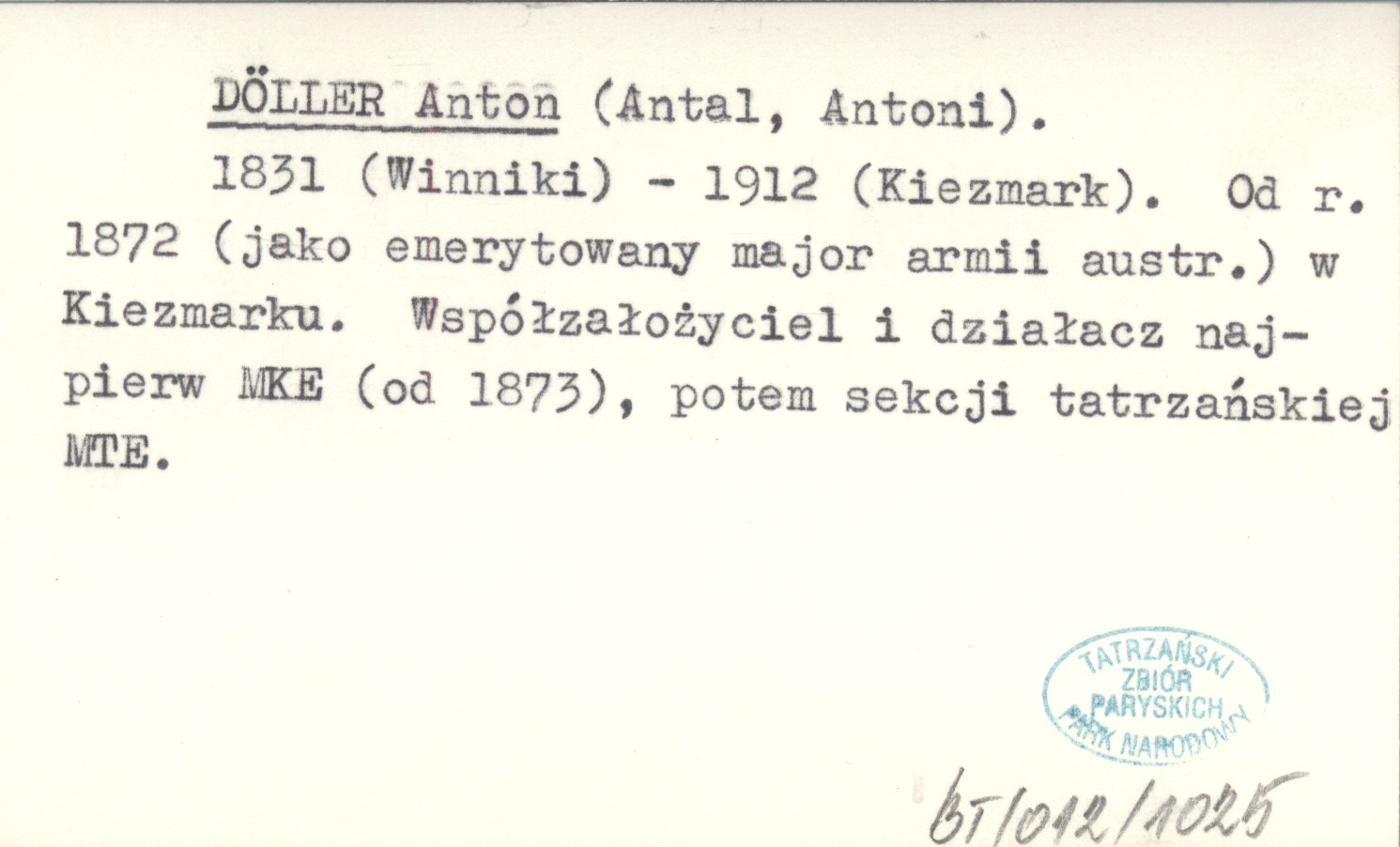 (Antal, Antoni). 1831 (Winniki)-1912 (Kiezmark). Od r. 1872 (jako emerytowany major armii austr.) w Kiezmarku. Współzałożyciel i działacz najpierw MKE (od 1873), potem sekcji tatrzańskiej MTE.