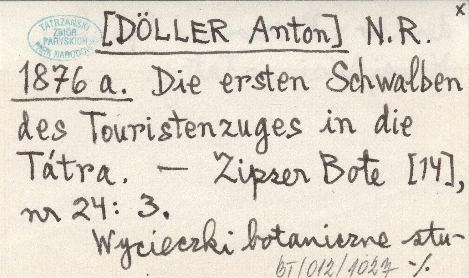 N. R. [DÖLLER Anton] 1876 a Die ersten Schwalben des Touristenzuges in die Tátra.