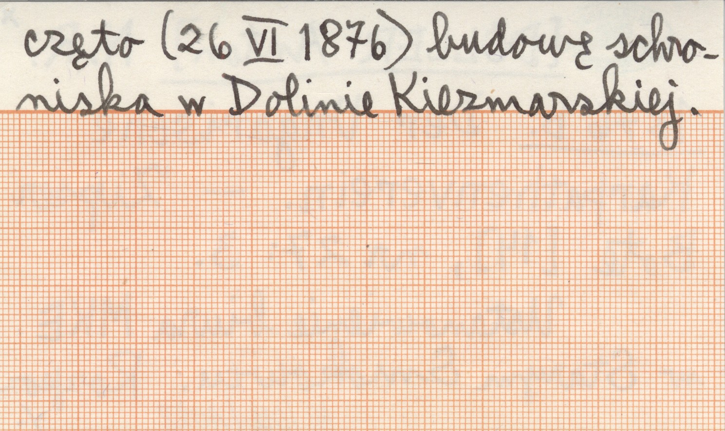 Zipser Bote, [14], nr 27: 3. Ustanowienie biura MKE w Starym Smokowcu. Rozpoczęto (26 VI 1876) budowę schroniska w Dolinie Kiezmarskiej.