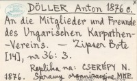 DÖLLER Anton 1876 c An die Mitglieder und Freunde des Ungarischen Karpathen-Vereins.