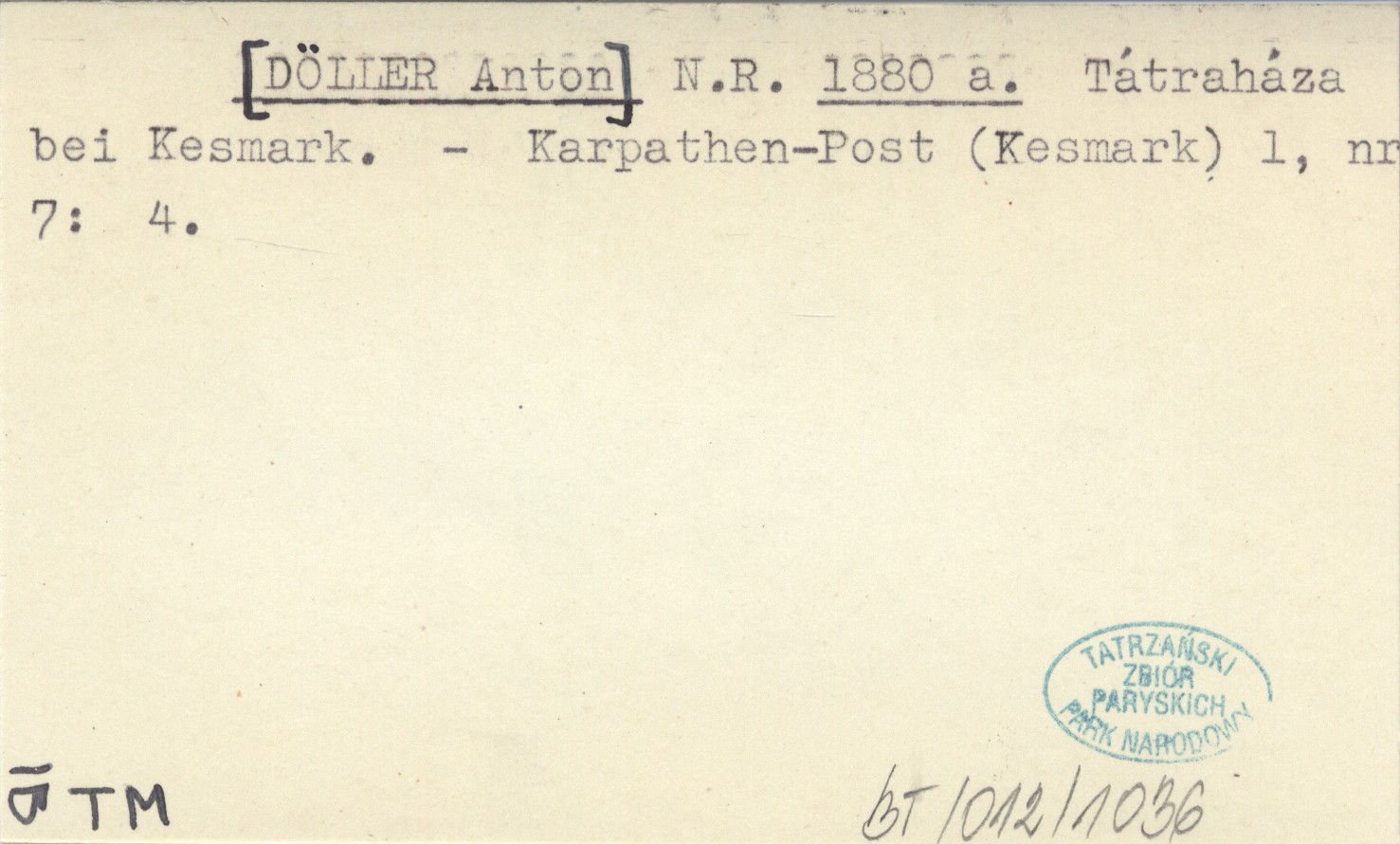 N. R. [DÖLLER Anton] 1880 a Tátraháza bei Kesmark.