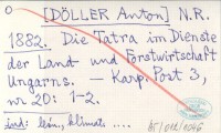 N. R. [DÖLLER Anton] 1881 f In Karpathen-Vereins-Angelegenheiten an T. in Nr. 29 des Zipser Boten.
