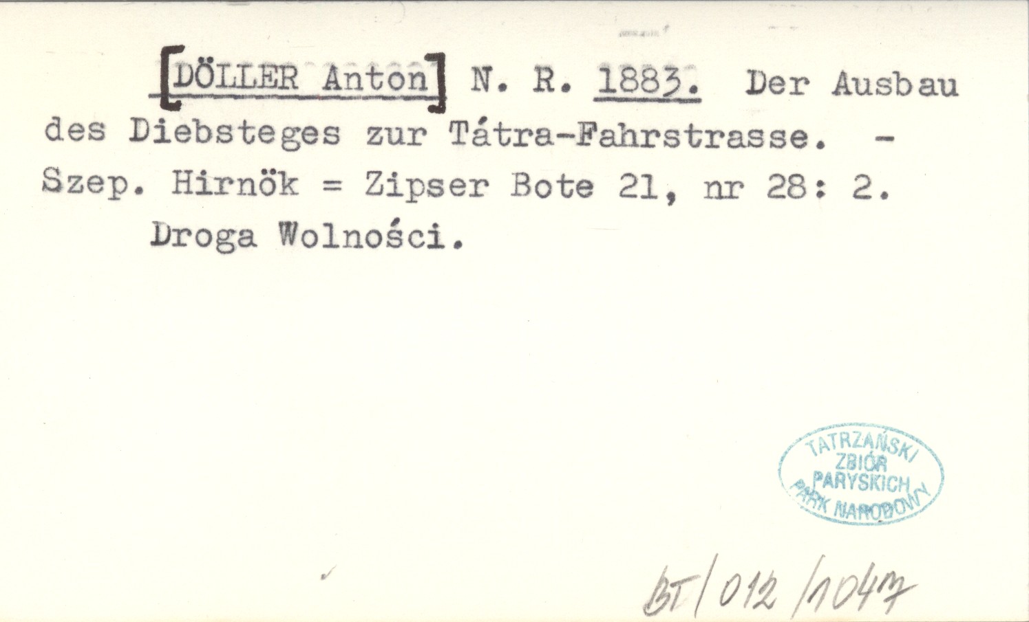 N. R. [DÖLLER Anton] 1883 Der Ausbau des Diebsteges zur Tátra-Fahrstrasse.