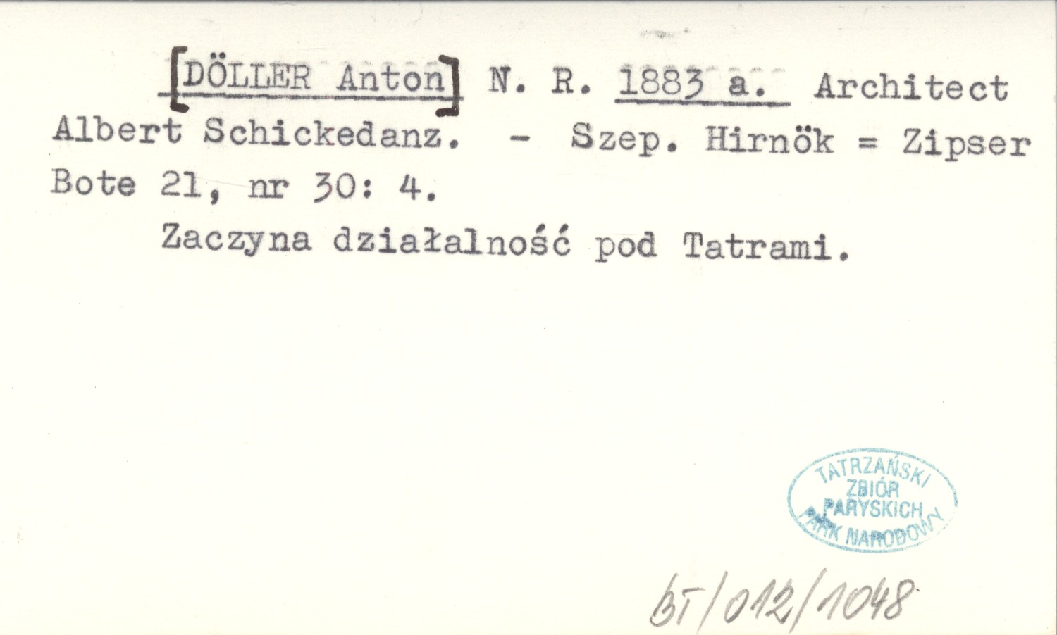 N. R. [DÖLLER Anton] 1883 a Architect Albert Schickedanz.