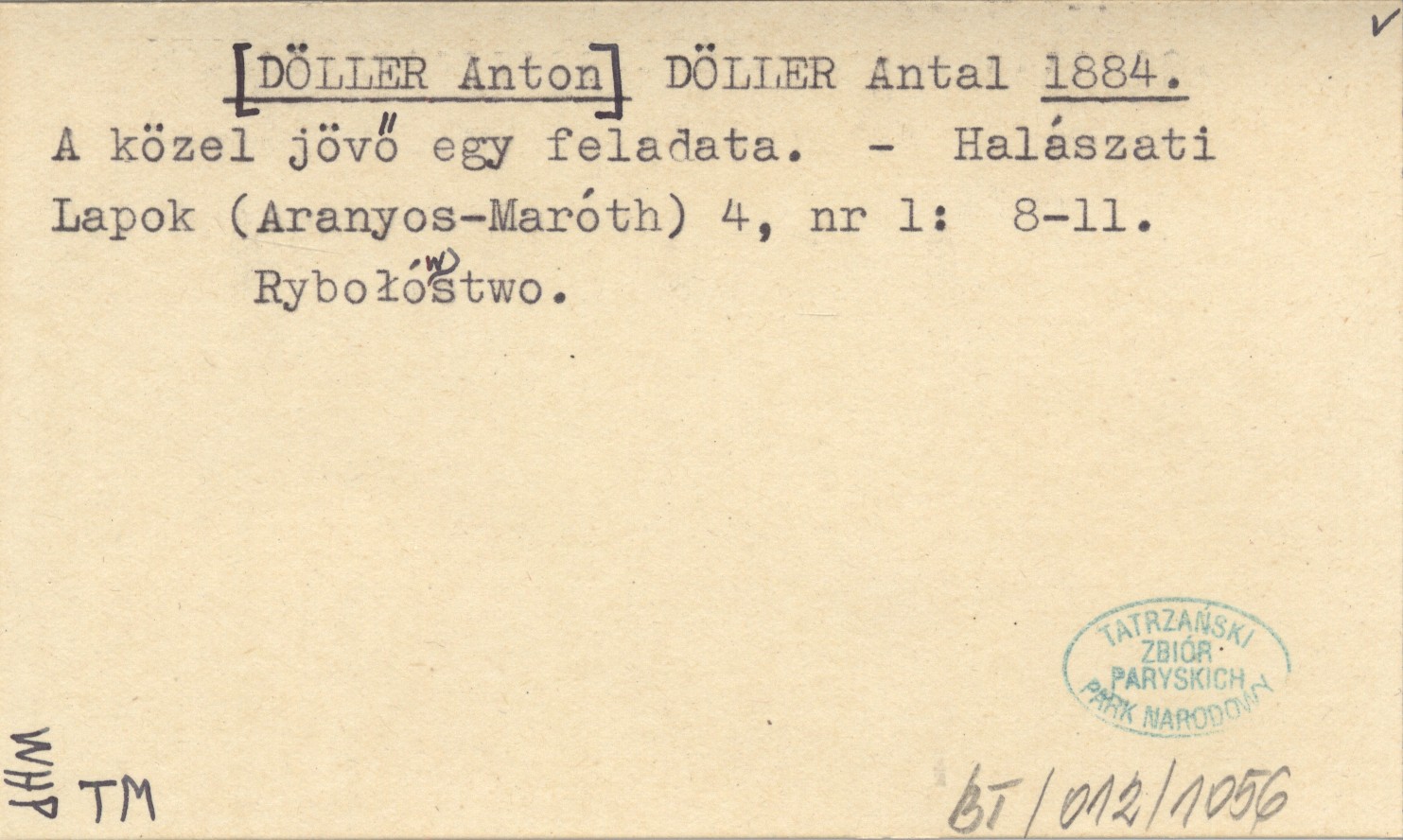 DÖLLER Antal [DÖLLER Anton] 1884 A közel jövő egy feladata.