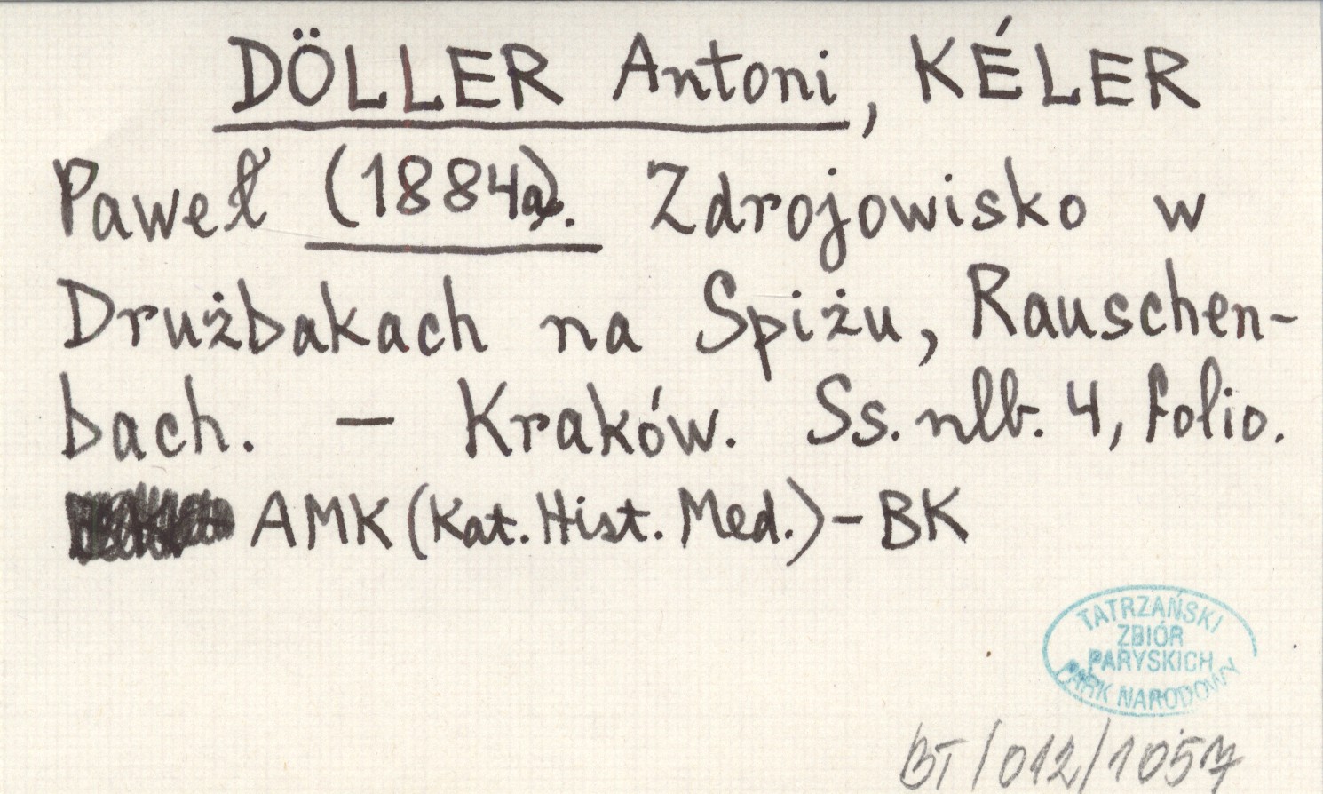 DÖLLER Antoni KÉLER, Paweł. ; 1884 a Zdrojowisko w Drużbakach na Spiżu, Rauschenbach.