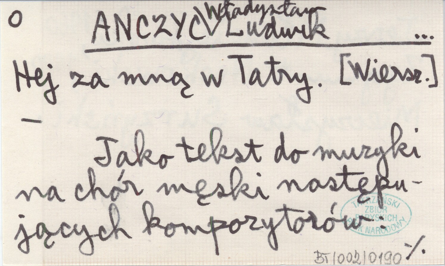 , [Wiersz.] Jako tekst do muzyki na chór męski następujących kompozytorów: Jerzy Młodziejowski 1960, Zygmunt Noskowski 1900, Mieczysław Surzyński.