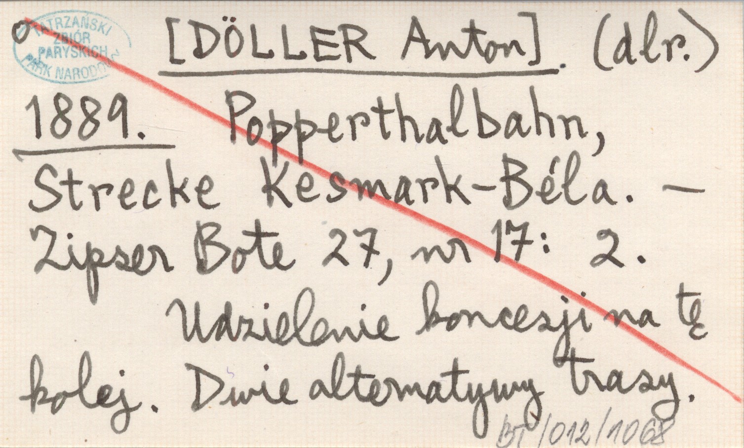 (dlr.) [DÖLLER Anton] 1889 Popperthalbahn, Strecke Kesmark - Béla.