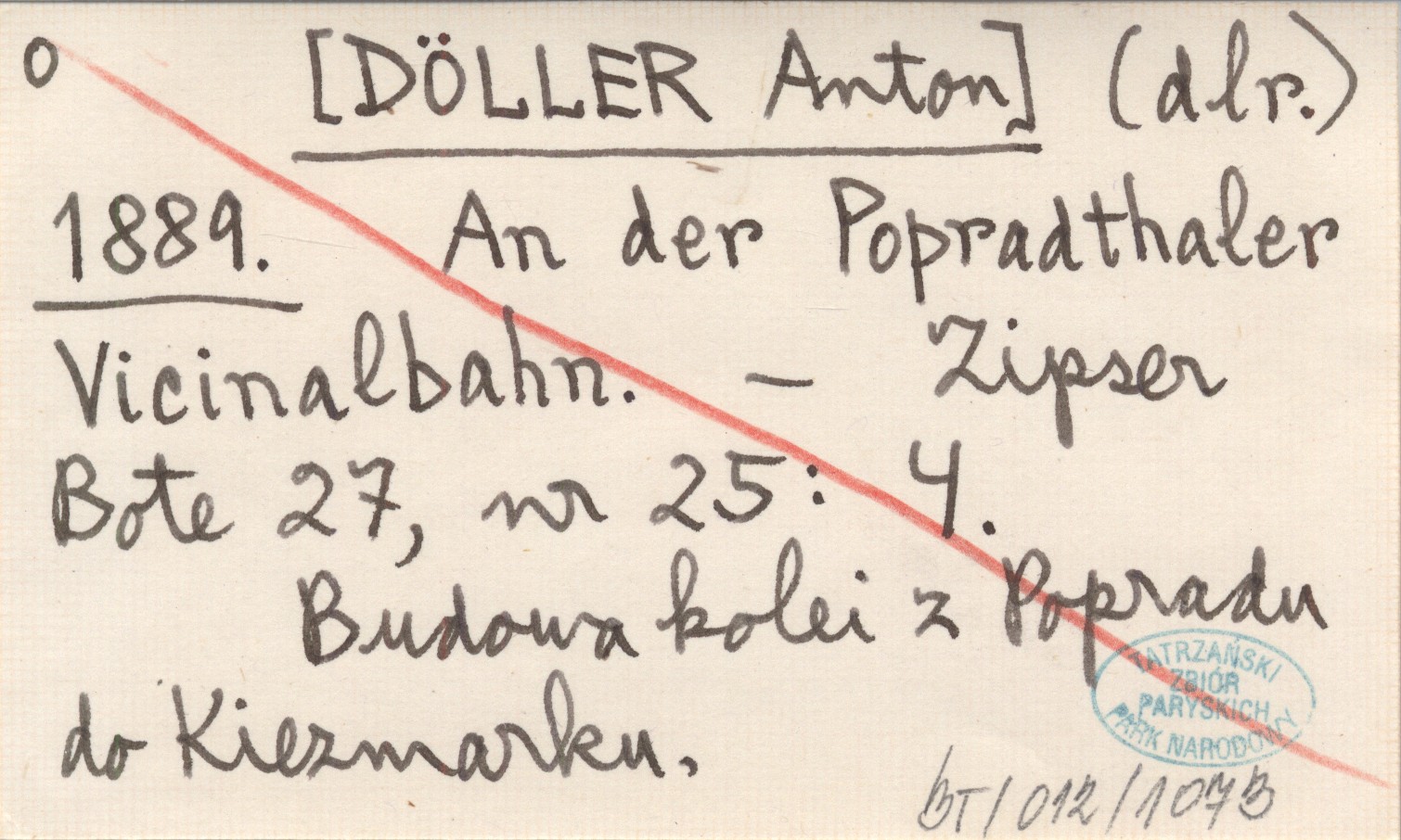 (dlr.) [DÖLLER Anton] 1889 An der Popradthaler Vicinalbahn.