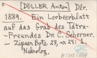 Dlr. [DÖLLER Anton] 1889 Ein Lorbeerblatt auf das Grab des Tátra-Freundes Dr. C. Scherner.