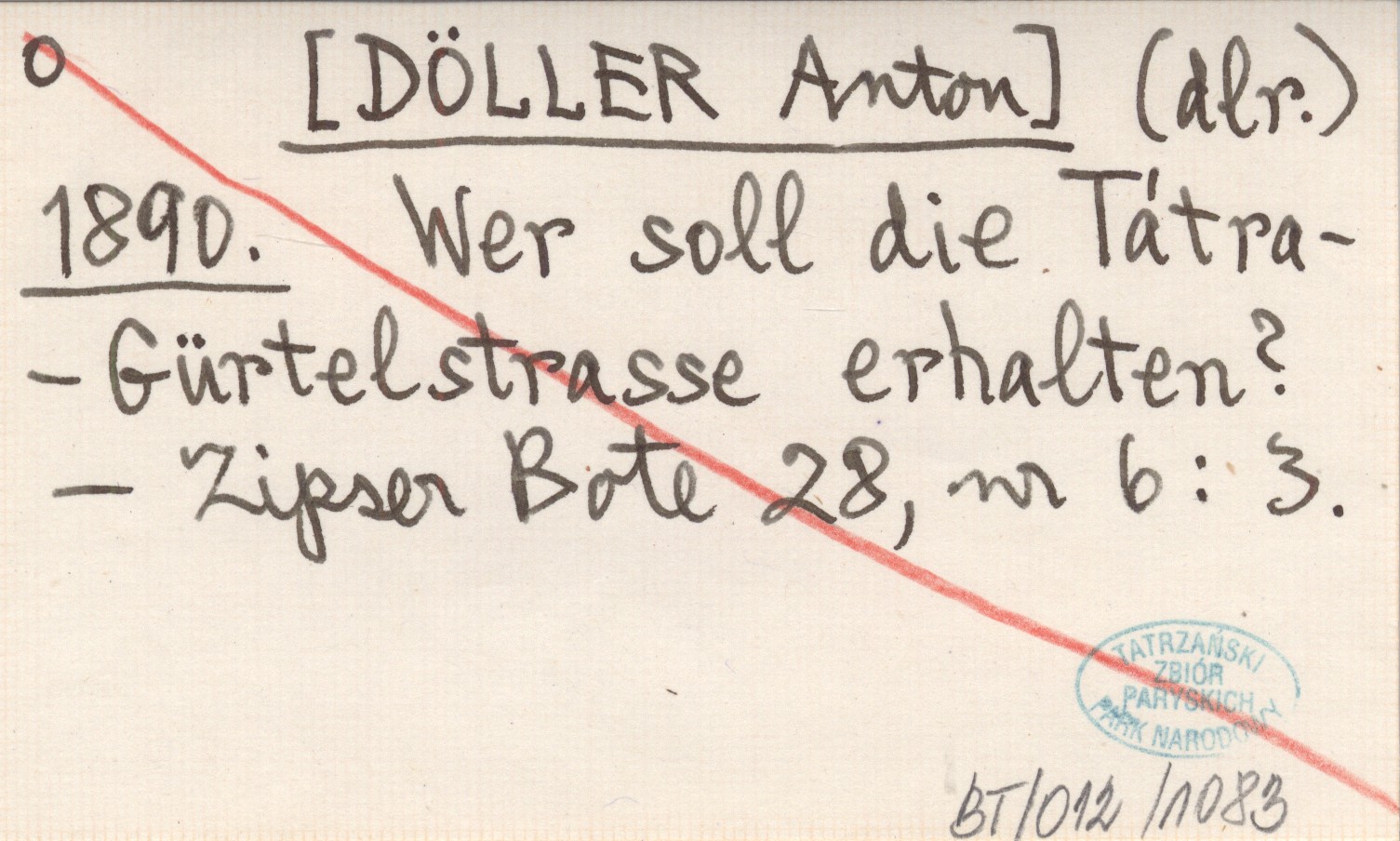 (dlr.) [DÖLLER Anton] 1890 Wer soll die Tátra-Gürtelstrasse erhalten?