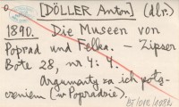 (dlr.) [DÖLLER Anton] 1890 Die Museen von Poprad und Felka.