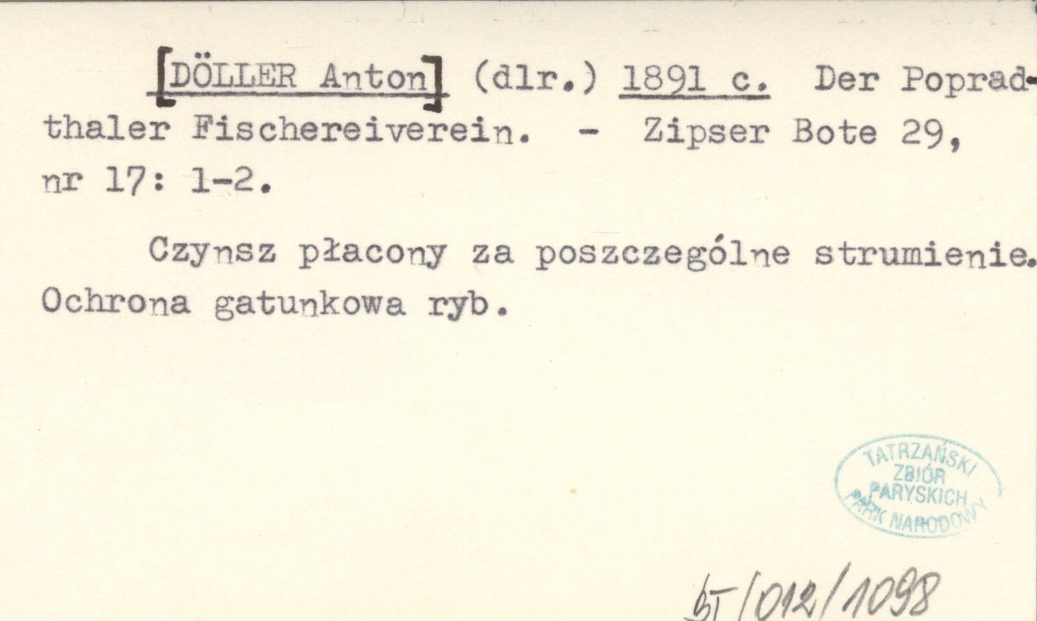 (dlr.) [DÖLLER Anton] 1891 c Der Popradthaler Fischereiverein.