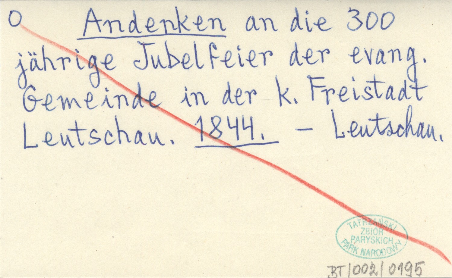 Andenken an die 300 jährige Jubelfeier der evang. Gemeinde in der k. Freistadt Leutschau. 1844