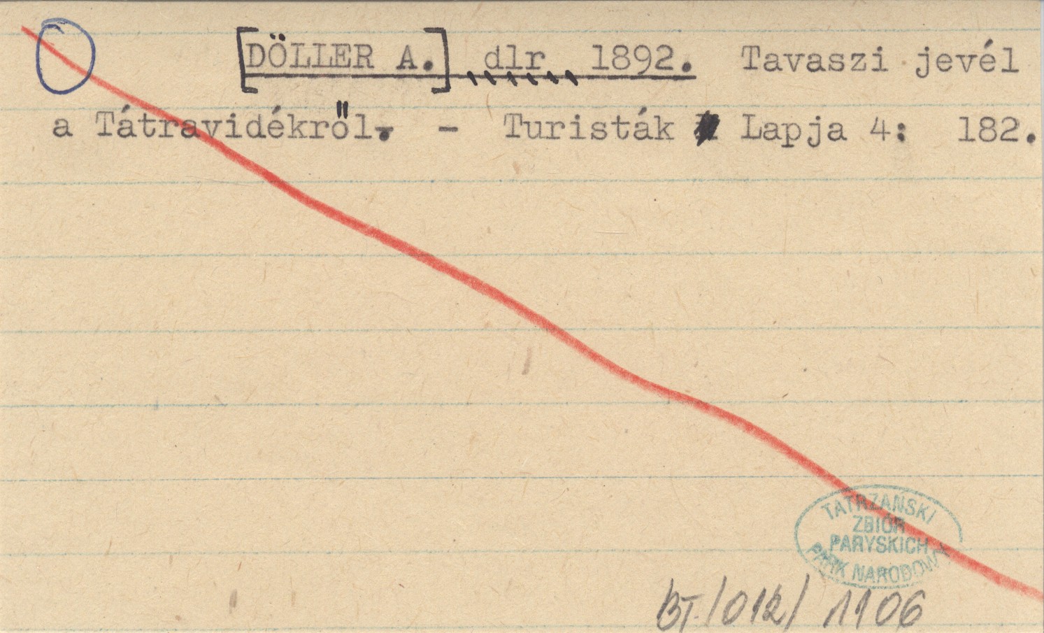 dlr [DÖLLER A.] 1892 Tavaszi jevél a Tátravidékről.