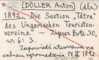(dlr.) [DÖLLER Anton] 1892 Wintertour in der Tátra.