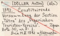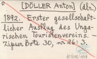 (dlr.) [DÖLLER Anton] 1892 Erster gesellschaftlicher Ausflug des Ungarischen Touristenvereins.