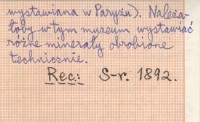 Zipser Bote, 30, nr 35: 5. W Muzeum Karpackim w Popradzie jest kostka granitu, z każdej strony inaczej obrobiona (była wystawiona w Paryżu). Należałoby w tym muzeum wystawić różne minerały obrobione technicznie. REC: S-r. 1892