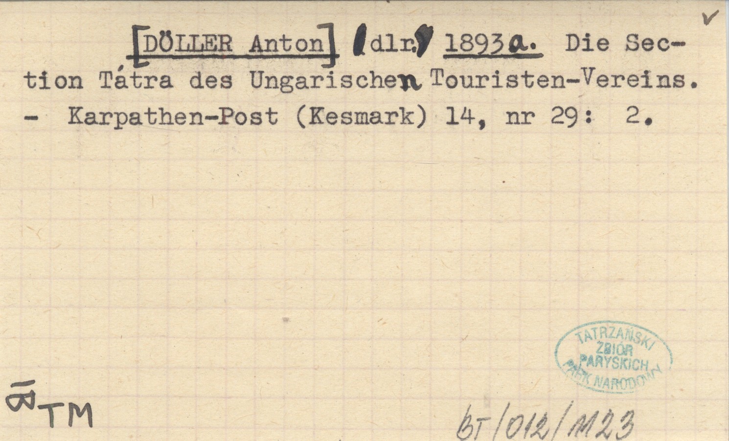 dlr. [DÖLLER Anton] 1893 a Die Section Tátra des Ungarischen Touristen-Vereins.