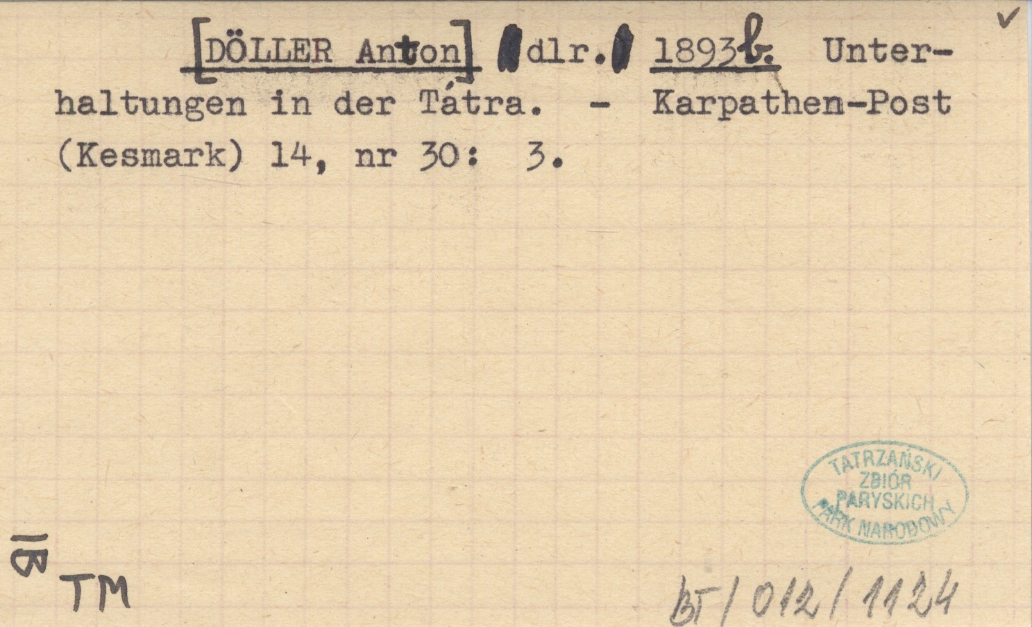 dlr. [DÖLLER Anton] 1893 b Unterhaltungen in der Tátra.