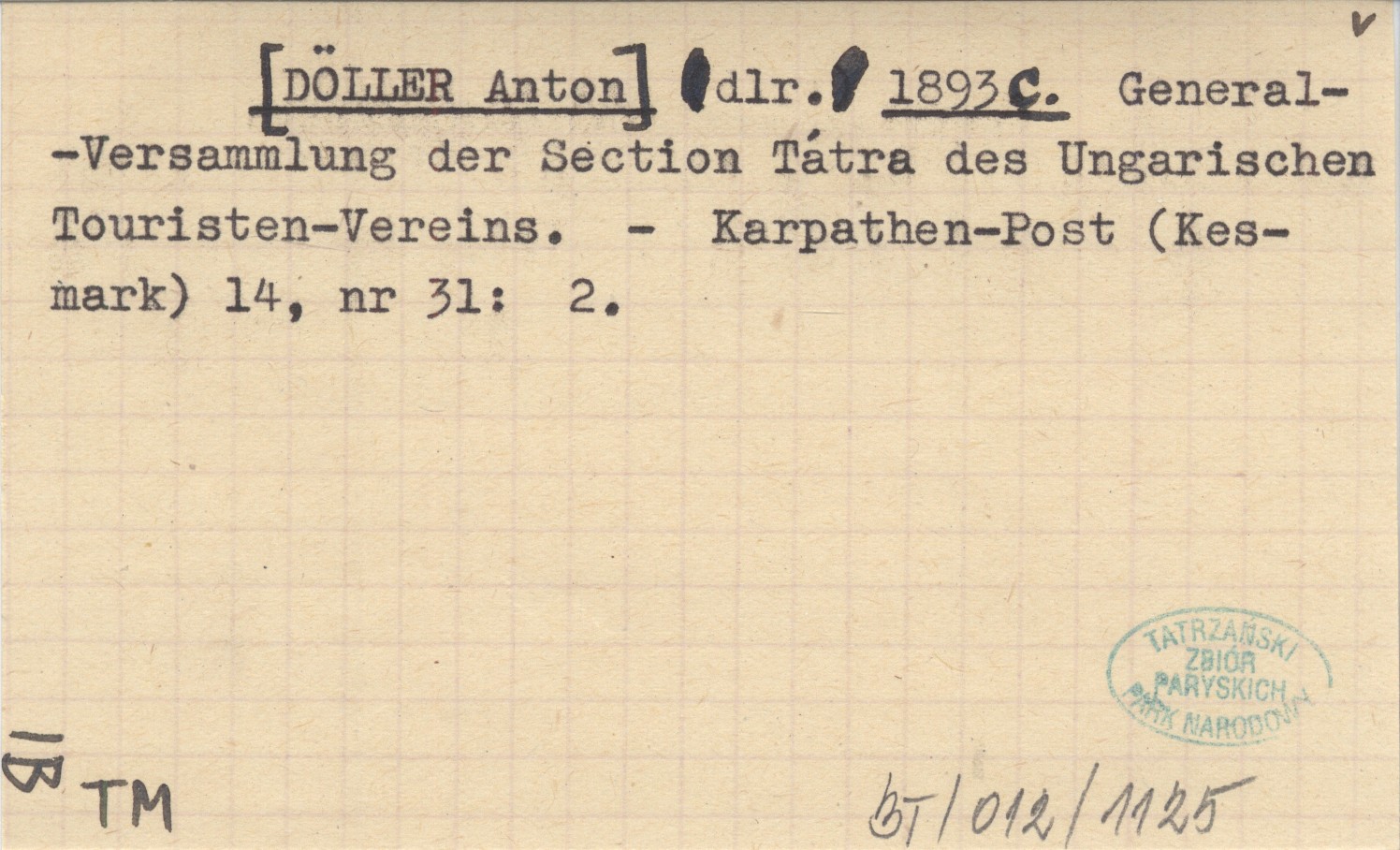 dlr. [DÖLLER Anton] 1893 c General-Versammlung der Section Tátra des Ungarischen Touristen-Vereins.
