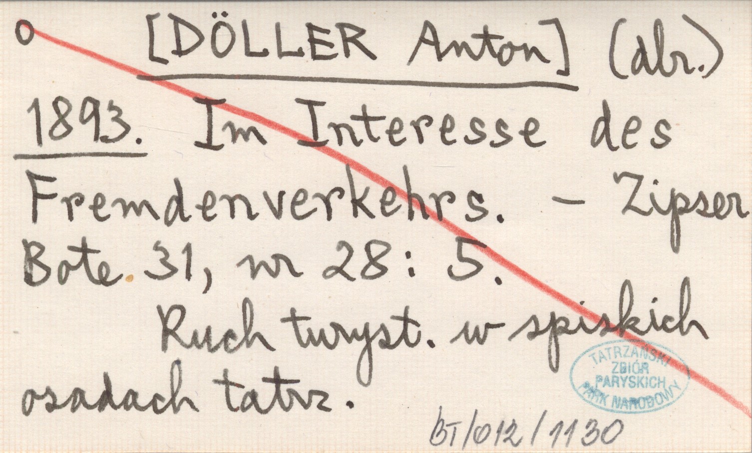(dlr.) [DÖLLER Anton] 1893 Im Interesse des Fremdenverkehrs.