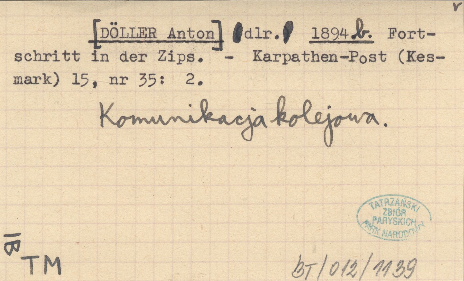 dlr. [DÖLLER Anton] 1894 b Fortschritt in der Zips.