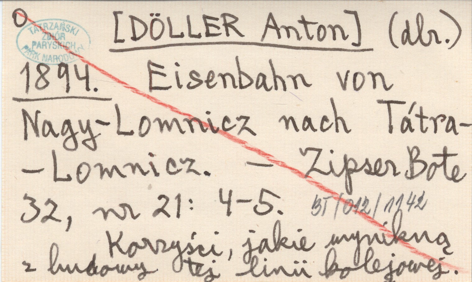 (dlr.) [DÖLLER Anton] 1894 Eisenbahn von Nagy-Lomnicz nach Tátra-Lomnicz.