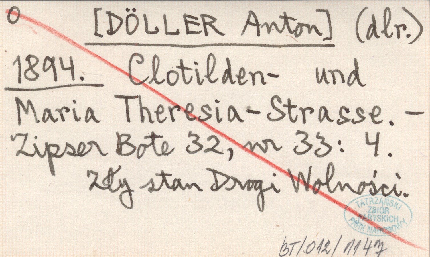 (dlr.) [DÖLLER Anton] 1894 Clotilden- und Maria Theresia-Strasse.