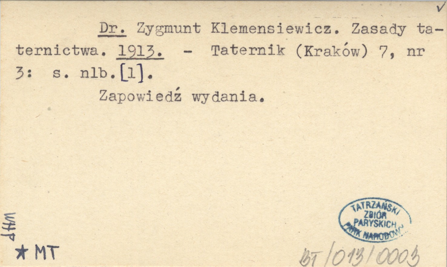 Taternik (Kraków) , 7, nr 3: [1]. Zapowiedź wydania.