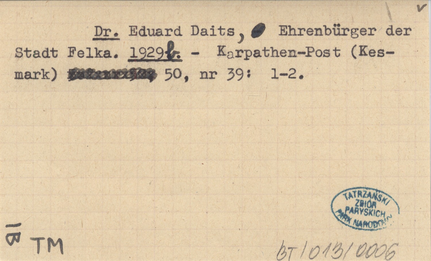 Dr. Eduard Daits, Ehrenbürger der Stadt Felka. 1929 b
