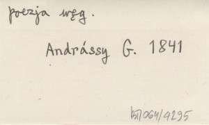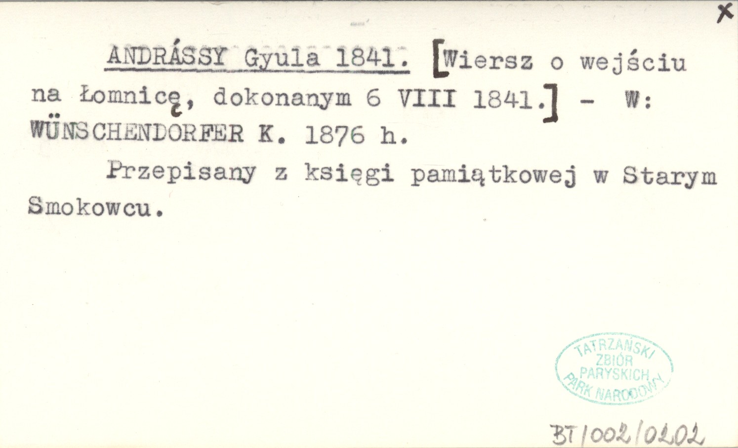 , [Wiersz o wejściu na Łomnicę, dokonanym 6 VIII 1841.] Przepisany z księgi pamiątkowej w Starym Smokowcu. WÜNSCHENDORFER K. 1876 h