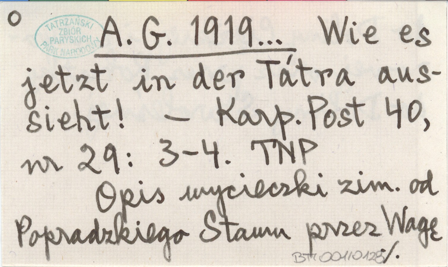 Karpathen-Post, 40, nr 29: 3-4. Opis wycieczki zimowej od Popradzkiego Stawu przez Wagę do Doliny Ciężkiej i Litworowej oraz przez Rohatkę do Doliny Staroleśnej.