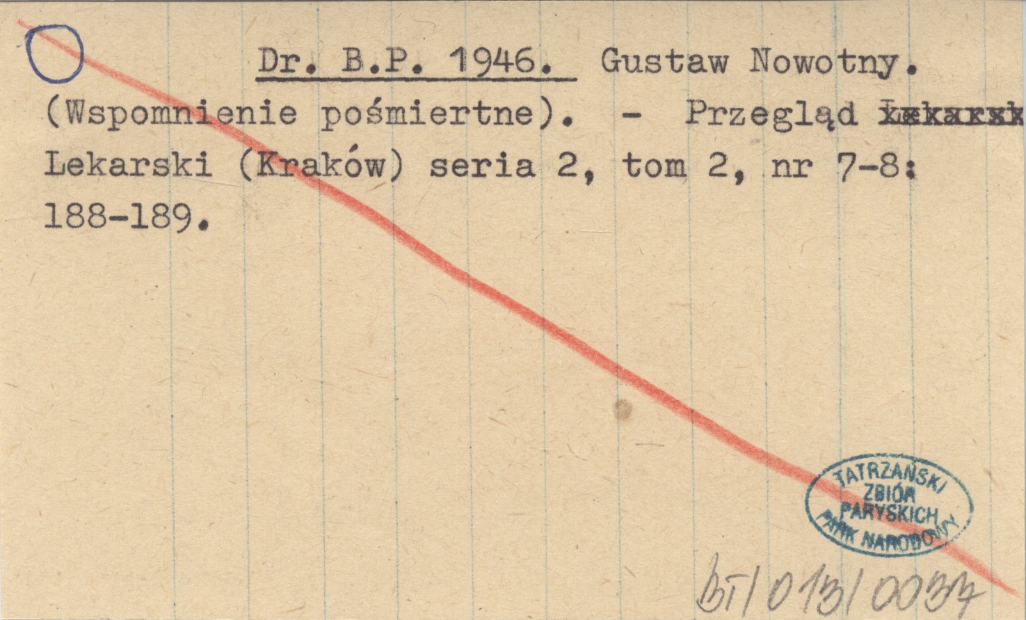 Dr. B. P. 1946 Gustaw Nowotny. (Wspomnienie pośmiertne).